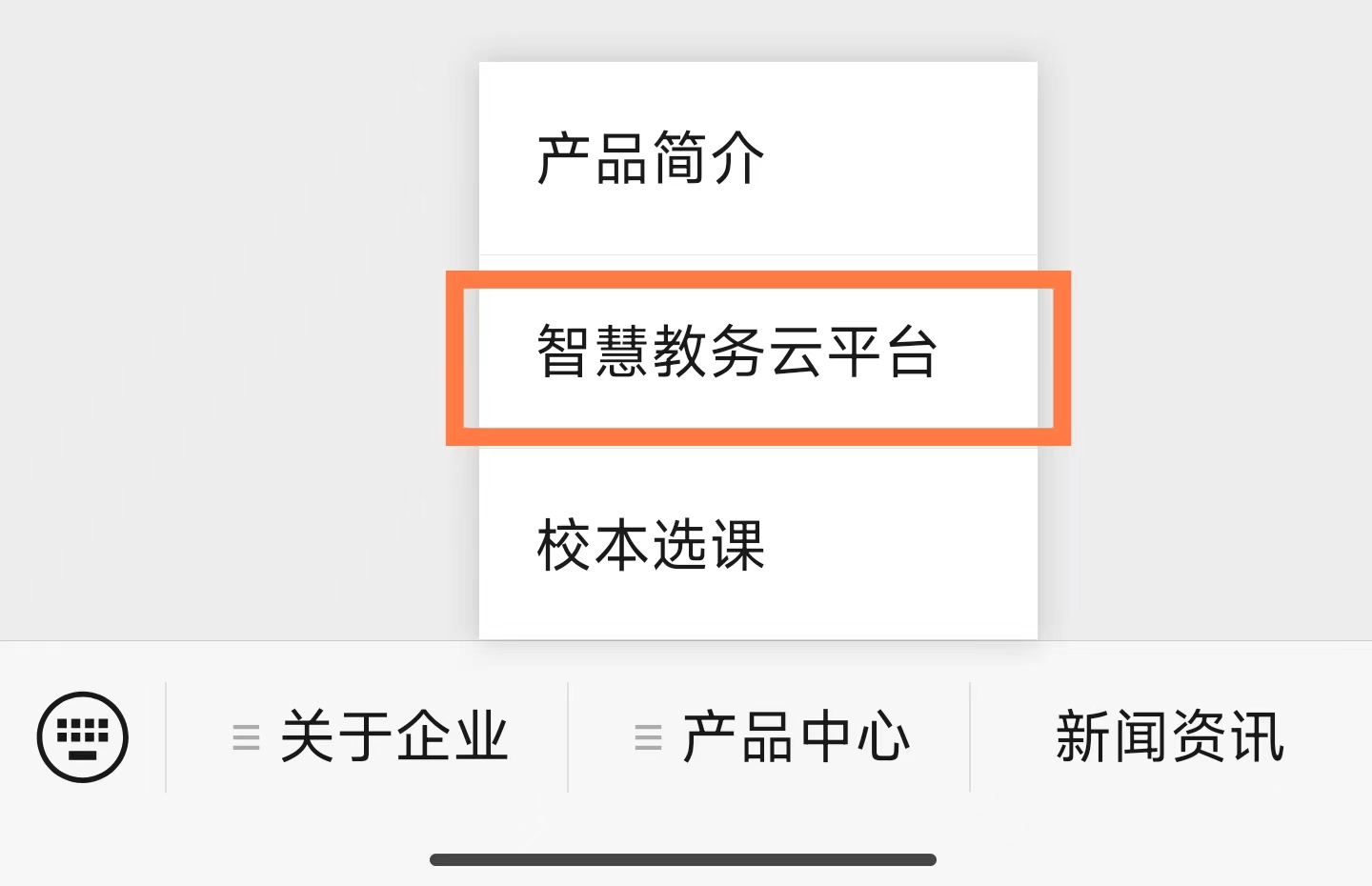 打开微信并搜索公众号“丰实科技”(或扫描以下二维码),关注并进入公众号,点击公众号的菜单“产品中心” – “智慧教务云平台”。
