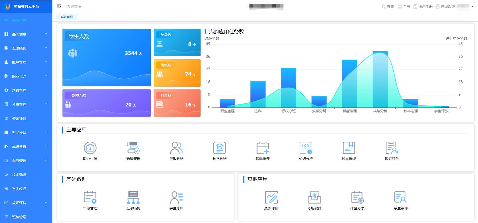 选择省、市、学校、输入用户名、密码,点击登录进入系统。